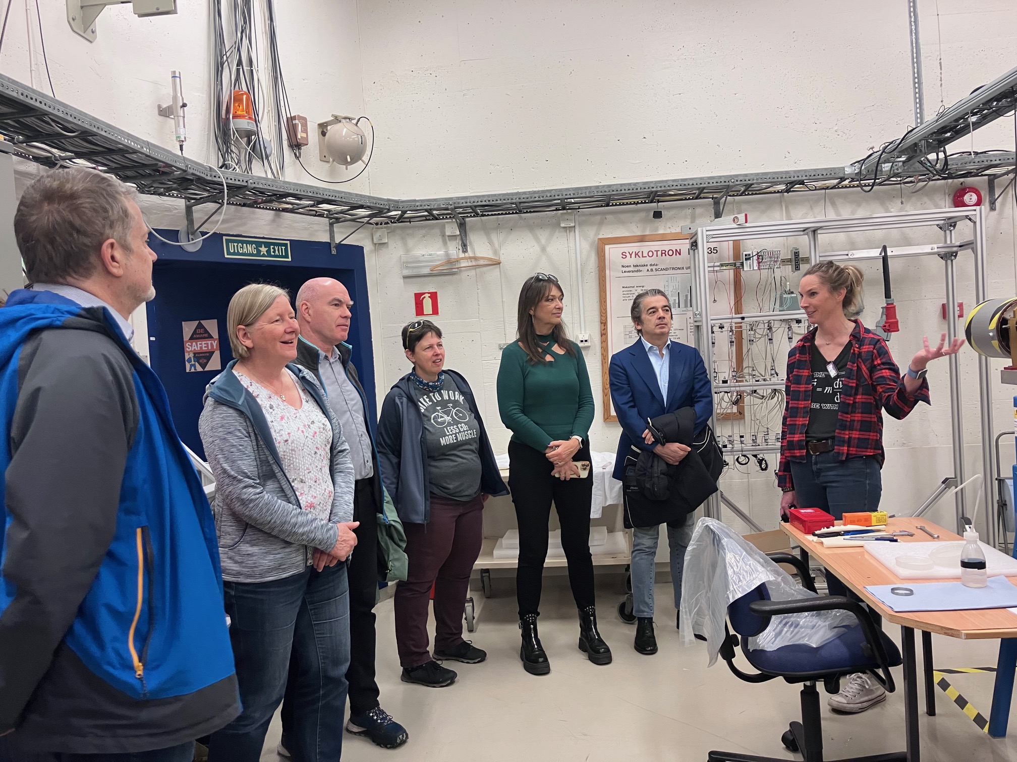 On the following day, the board visited the physics department of the University of Oslo and in particular, the Cyclotron laboratory. Due to maintenance, the board could actually see the heart of the facility: the MC-35 Skanditronix cyclotron, which was installed in 1979 and delivers light ion beams for studies in nuclear physics as well as in biophysics and nuclear medicine. The visit continued with a guided tour of the beam line, which hosts the OSCAR array composed of 30 LaBr detectors. In conjunction with segmented Si junctions for light particle detection, this device is used to measure nuclear level densities and gamma-decay strength functions via the world-famous “Oslo” method. These quantities are crucial to test nuclear theories as well as to model the processes that lead to nucleosynthesis in stellar environments.